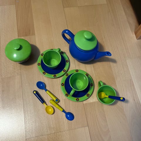 Kuvanmukainen teehetkisetti. Teekannun kansi ei näy kuvassa mutta tulee mukaan.