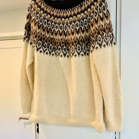 Islantilainen villapaita, lämpimästä ja paksummasta alafosslopi langasta. Paksumpi ja lämmin, joka soveltuu kylmemmällekin ilmalle. Vastaa kokoa L.