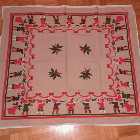 Almedahlin Ruotsissa 70-luvulla tehty jouluinen pöytäliina. Design Louise Fougstedt. Ehjä ja puhdas. Koko 83 x 90 cm. Kuljetus onnistuu pääkaupunkiseudulle.
