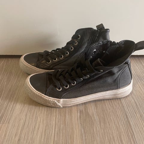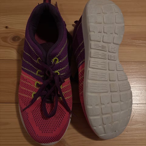Harmaa, vaalean punaiset perus lenkkarit pinkeillä viiruilla. Merkki Be Wild. Käytetty yhdellä tytöllä. Meillä ei eläimiä