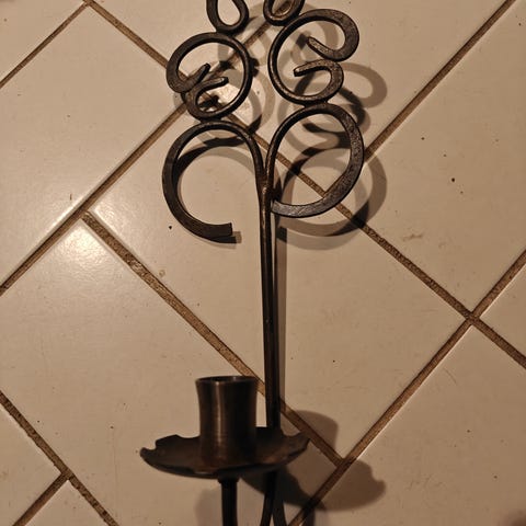 Myydään takorautainen seinäkynttilän pidike esim hirren välissä pidettäväksi.