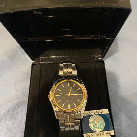 Tarjolla hyvin merkkitietoiselle käyttäjälle käytetty, mutta näyttävä Citizen Eco-Drive Chronograph miesten rannekello. Kello hyödyntää Eco-Drive-teknologiaa, eli valo lataa kellon ja paristonvaihtoja ei tarvitse tehdä usein. Tämä malli yhdistää sporttisen kronografitoiminnallisuuden, 24-h alitaulun ja klassisen metallirannekkeen – tyylikäs valinta niin arkeen kuin viikonloppuun.