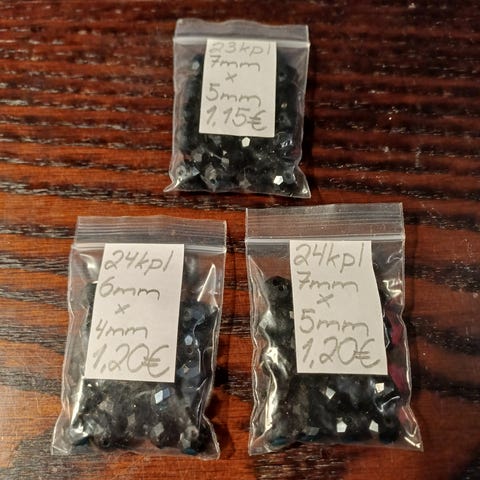 Helmet. Lasihelmet. Lamppulasi sydämet. Pienempi ja isompi. Pieni 0,15€ 13mm x 12mm ja isompi 0,60€ 20mm x 20mm. Yht. 0,75€. Haku tai postitus kirjeenä 2,70€ kirjekuoren kanssa 50g asti tai 3,45€ helposti kuoressa 500g asti.