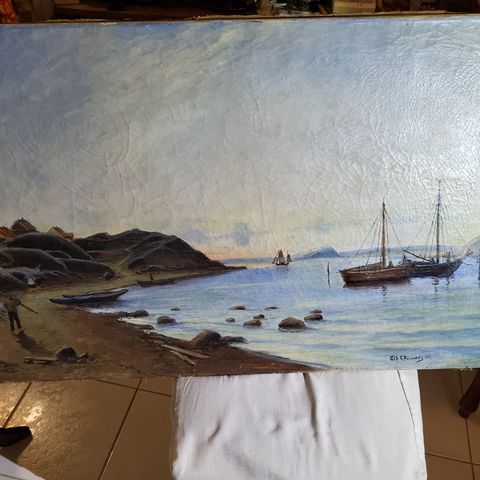 Barend Cornelis Koekkoekin öljyvärityö Silta kodin lähellä. Taiteilija oli syntynyt Hollannissa v. 1803 ja kuollut Saksassa v. 1862. Työn korkeus on 10 cm ja leveys 16 cm. Kehys 16 X 22 cm.