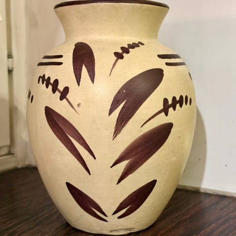 Kauniin herkänsävyinen siniharmaa pieni malja / ruukku. Itselläni samanmallinen toinen, jossa pohjassa Made in Finland, mutta tässä on vain maalarin signeeraus M tai W?