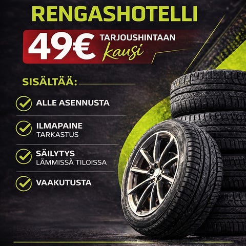 Renkaiden turvallinen ja helppo säilytys rengashotellissa Tampereen kainalossa Pirkkalassa.