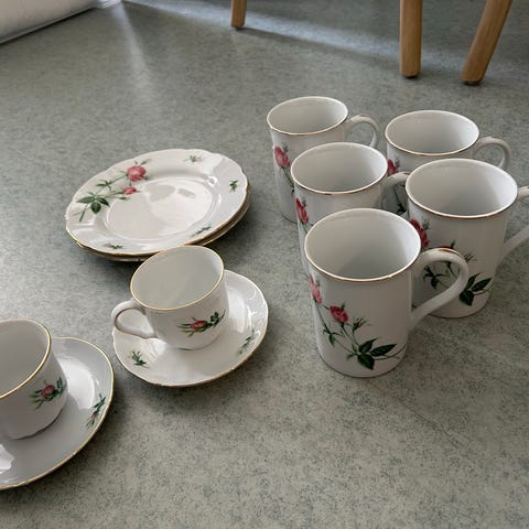 Sarjaa tehty 12 erilaisella kukalla. Nämä lautaset kaikilla eri kuvioilla eli kyseessä koko sarja.