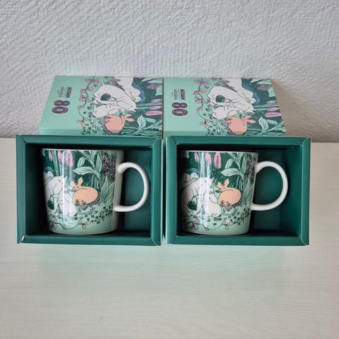 Myydään tarralliset mukit vaikka lahjaksi. 30€ muuminpäivä ja 40€ Japani tai jos ostat molemmat niin yhteishinta 60€.