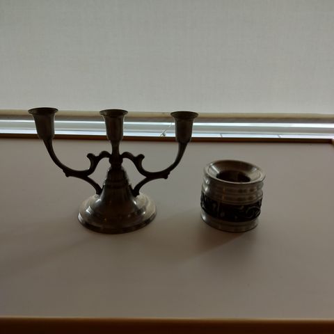 Kannellinen Tina astia ( Gab Tenn Svensk vara ) korkeus 31 cm ja paino 572 gr. Suuaukon halkaisija 12,5 cm. Yhdessä kohtaa kaunis kuvio. Kyljessä pari kolhua (painaumaa ) ja astian sisäpinta kulunut, mutta yleisilme siisti. Ilmeisesti melko iäkäs astia. Olisiko joku palkintopokaali.
