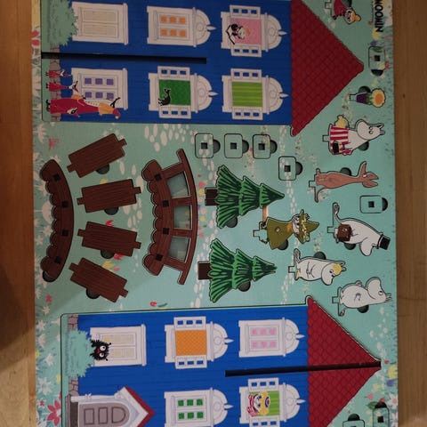 Myydään palapeli/leikkialusta Muumilaaksosta talvella ja kesällä. Mukana Nuuskamuikkusen teltta + nuotio. Palapeli ehjä, joitain pieniä jälkiä joissain paloissa.