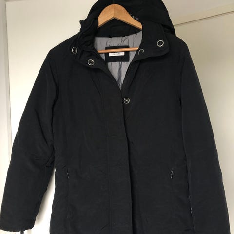Myydään Sand -merkkinen talvitakki. Toppatakkia ei ole pesetetty, kauluksessa vähän meikkivoidetta. Yritän kostealla pyyhkiä vielä.