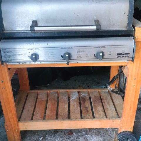 Käytössä kulunut kaasugrilli. Hyvin palvellut, nyt vuosia varastossa seissyt. Hae pois.