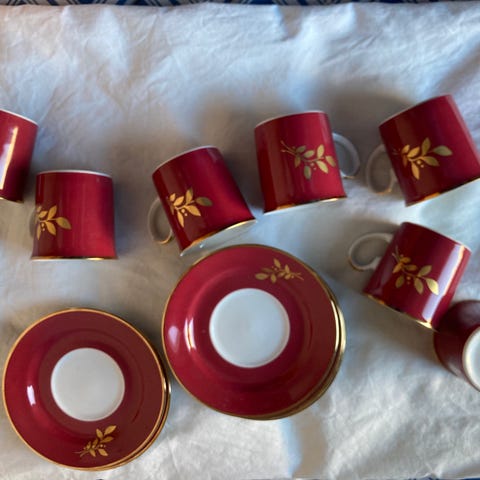 Saksalainen kahviastiasto, 6kpl kupit, aluslautaset, lautaset. Vain nouto!
