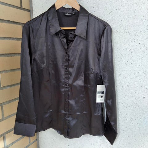 Friendtexin juhlava, kauniin kuparinruskea pusero. Kokolapussa XL, mutta tyköistuvaa mallia.Vastaa mielestäni n. kokoa 42. Kangas hohtavaa ja hieman joustavaa. Oikein siisti ja hyväkuntoinen, jäänyt käyttämättä.