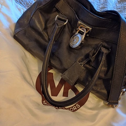 Käytössä ollut mutta edelleen siistissä kunnossa oleva Michael Korssin large Hamilton. Sisäkankaassa jotain likaa sekä lukossa pientä kulumaa, ei muuta moitittavaa.
