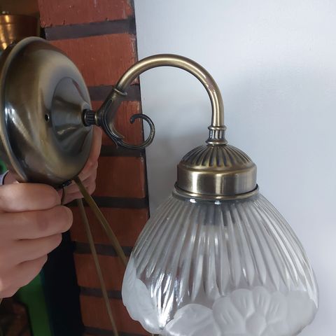 Kaunis, siisti ja virheetön seinälampetti 80 - luvulta. Lasissa kaunis kukkakuvio. Välikatkaisija. Korkeus 17,5 cm metalliosasta mitattuna ja halkaisija 11 cm. Sopisi vaikka lahjaksi koska ei käytön jälkiä.