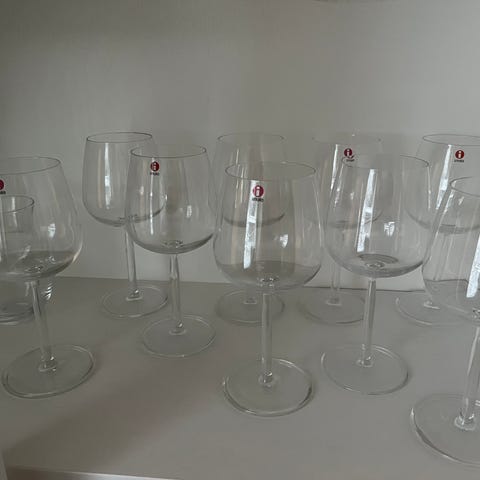 Nyt pitäisi saada uusi koti näille Iittalan punaviinilaseille 5 kpl ja decanterille.