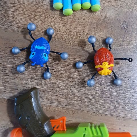 X-shot pyssy(haulikko) johon saa kaksi panosta piippuun aluksi.Laukaistaan sitten peräkkäin.. pituus yli 50 cm.. mukana 10 panosta ja dinosaurusten munia joihin yritetään osua..
