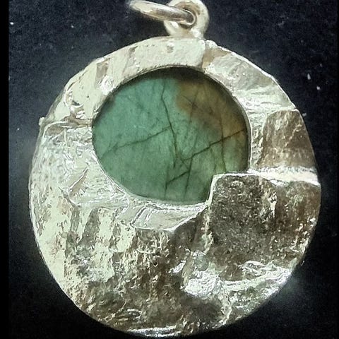 Kalkkeen hopeinen riipus spektroliitillä kooltaan 1,5 x 1,5 cm. Vintagea.
