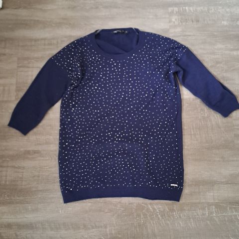 Arnie says -merkkinen neule. Materiaali 50% akryylia, 30% villaa, 20% alpakkaa. Koko M (reilu). Kainalo-kainalo 50cm, olka-helma 64cm. Kauniit värit: luonnon valkoinen ja harmaan eri sävyt. Neule on hyvässä kunnossa.