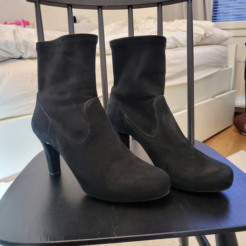 Kerran käytössä olleet, erittäin hyvässä kunnossa. Ukopohjista näkyy, että kengillä on kävelty ulkona.