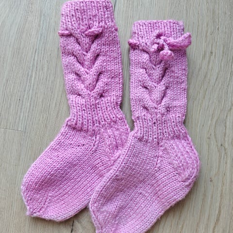 Pehmeät pinkit käsintehdyt palmikkovillasukat, koko 38. Konepestävät. Hinta 12€.