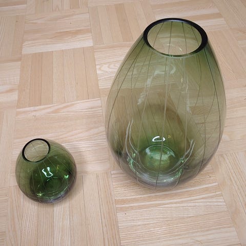 Kaunis Pentikin laskos/vekki lampunvarjostin, silkkiä, käyttämätön, paketissaan, väri vihreä, mitat lev 25 x kork 15 cm.