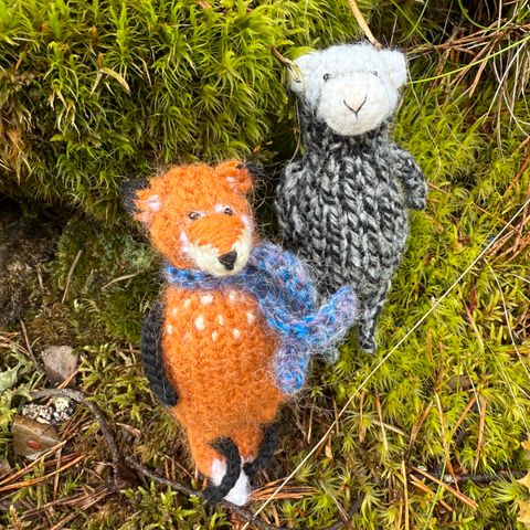 Toy is hand-knitted from wool with knitting needles, filled with holofiber, and are washable by hand at 30 degrees.