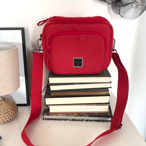 Edessä tilava tasku, jossa pehmustettu lokero mm akuille/latureille tms. Säädettävä olkahihna jossa hyvä pehmuste. Kantokahvat kahvapehmusteella.
