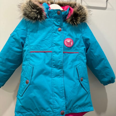 River Island talvitakki/ kaupunki takki koko 110cm (4-5 vuotiaan koko). Karvakaulus on napeilla = irrotettava.