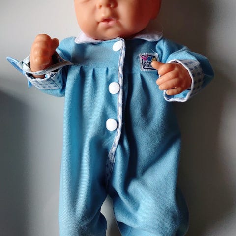 Tummaihoinen, isompi, noin 48cm pitkä Effe vauvanukke. Nukke on hyväkuntoinen ja anatomisesti tyttö.