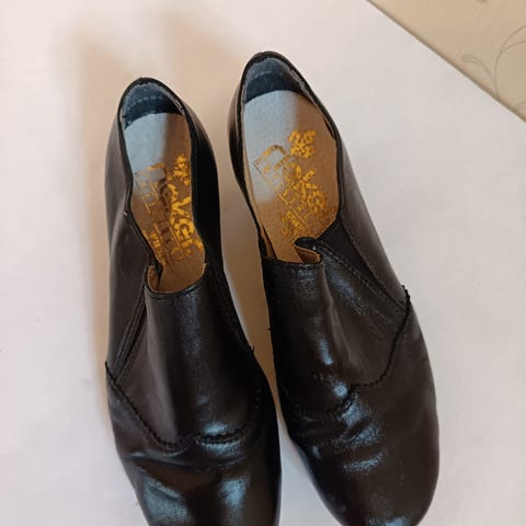 Hyväkuntoiset mustat nahkakengät. Antistress-ominaisuus, eli pehmustusta jalan alla - porhaltaisin näillä mieluusti vieläkin, jollei jalka olisi levinnyt numerolla joka suuntaan.