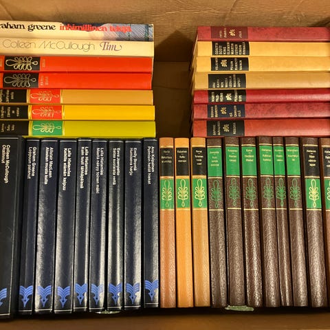4 €/ kpl, kaikki yht 9 €. Pelkästään Kellojen kaupunki maksaa antikvariaatissa 8 €+ postit.