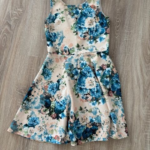 Vaaleansininen romper (shortsipuku). Kankaassa kauniita vaaleanpunaisia ruusuja. Ei vetoketjuja. Vyötäröstä joustava kumilanka, kiinnitys nyöreillä niskassa. Koko S-M. Kangas on tekokuitua. Ei postitusta ja maksu vain käteisellä.
