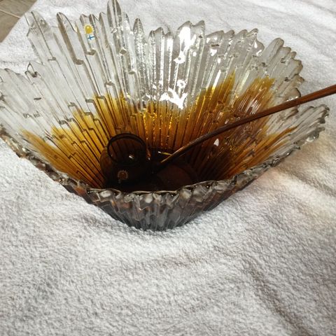Heidi Blomstedt kulho / tarjoilumalja puhallettua lasia, kirkas. Pohjassa joitakin haaleita jälkiä. Ei säröjä/halkeamia tai syviä naarmuja. Järkeviä tarjouksia voi esittää, ei vaihtoa. Mieluiten nouto sonkajärveltä / iisalmesta niin voit tarkistaa tuotteen kunnon ennen kaupan tekoa.