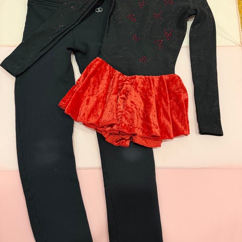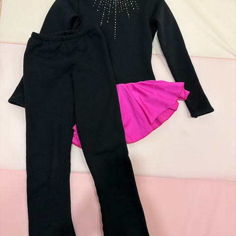 Taitoluistelun treeneihin mekko joka on kuten taitoluistelupuvut, siinä on housuosa.