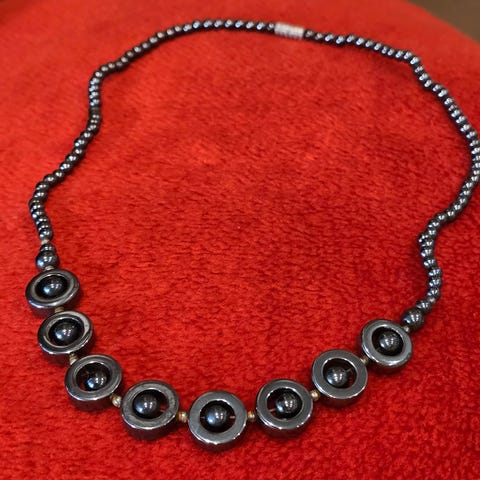 Hematiitti kaulakoruja ja rannekoru. Hinnat 5€, 10€, 15€ kpl