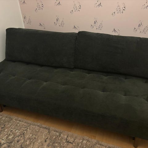 3 istuttava flipp vuodesohva harmaa kangas.Helppo sohva tehä vuoteeksi