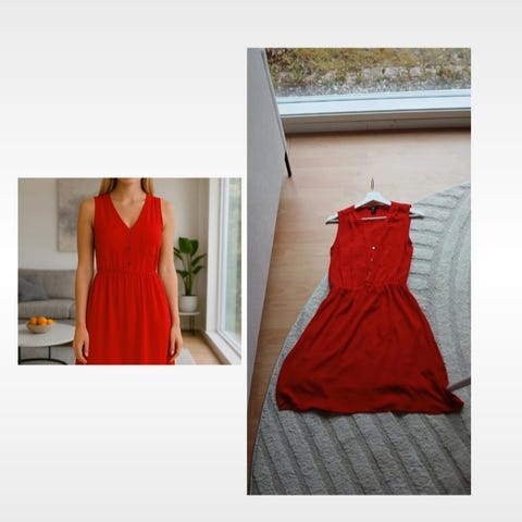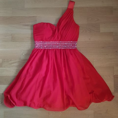 Elloksen naisellinen ja kaunis juhlamekko/ kotelomekko pikkujouluihin tai jouluksi. Väri ihan kunnon kirkkaanpunainen, kuva saattaa hieman vääristää. Ihan siisti käytetty kunto. Helmassa näkyy käänteet (oli lyhennetty ja nyt purettu), jotka lähtenee silittämällä pois -jää ostajan hommaksi. Koiratalous.