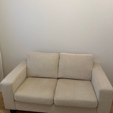 Klassinen Nappituftattu Sohva - Beige Kangas, 210x100x141 cm, Tyylikäs Puurunko,todella siisti ja ehjä,kokonaan verhoiltu uudestaan.