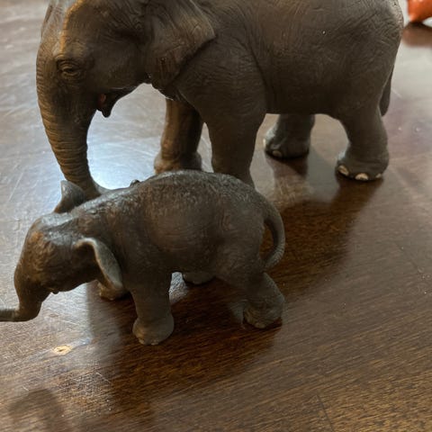 7 elefanttia 4-18 cm korkeus. 3 eri materiaalia. Valkoisessa pieniä värivirheitä. Hintaan 8