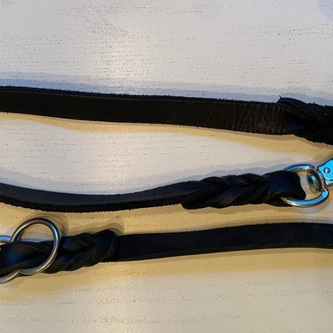 Käyttämätön 2 m pitkä ja 2 cm leveä tekstiilitalutin kahdella lukolla ja kolmella renkaalla.