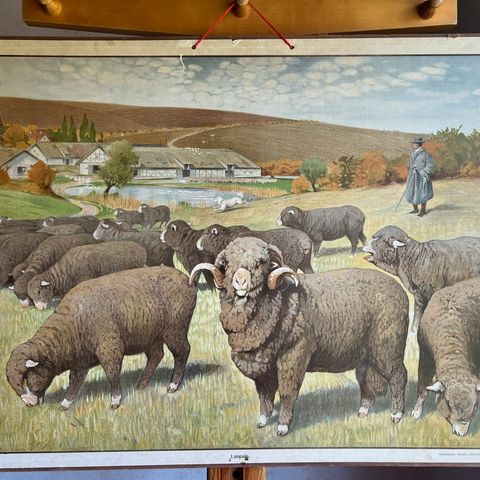 Hieno koulukäytössä ollut opetustaulu lampaista