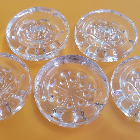 Hienokuntoiset Lumitähti kynttilänjalat, Riihimäen lasi, design Nanny Still, tuotannossa 70-luvulla. Mukana alkuperäinen pakkaus, jossa hieman kulumaa ja pohjassa teippiä. Lasissa ei naarmuja tai säröjä. Joulu lähestyy! :)