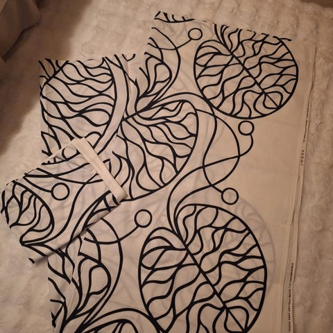 Marimekon paksusta puuvillasatiinista teetetyt verhot+ TL