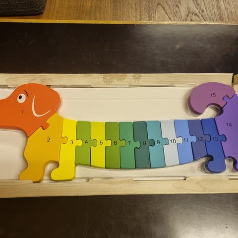 Vanha ja paljon koottu puinen numeropalapeli.