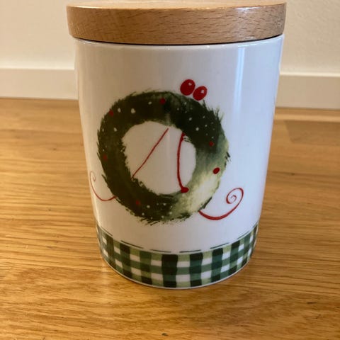 Arabia Minna Immosen säilytypurkki Piparit ja Pastillit. Ilmatiivis puukansi. Käyttämätön. Noutu Takahuhdista tai Taysilta.