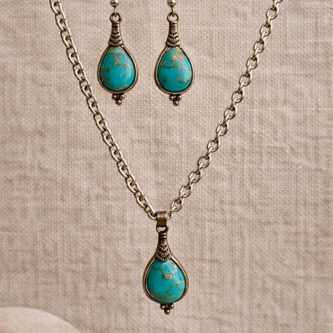 Hopeakorusetti sinisillä kivillä