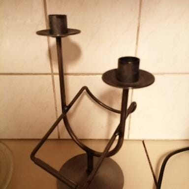 Viinipulloteline kahdelle kynttilälle 4e ja kynttilänjalka lämpökynttilälle 2e