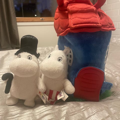 Mukaan tulee patalappu,patakinnas, muumimamma essu ja pyyheliina.